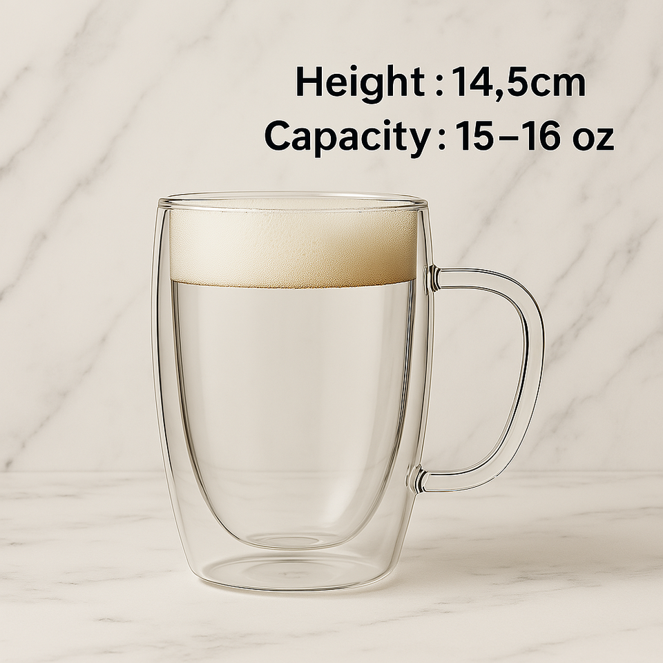 Hot Sale Classic Design 450 ML Double Wall Borosilicate Glass Mug Cup with Handle