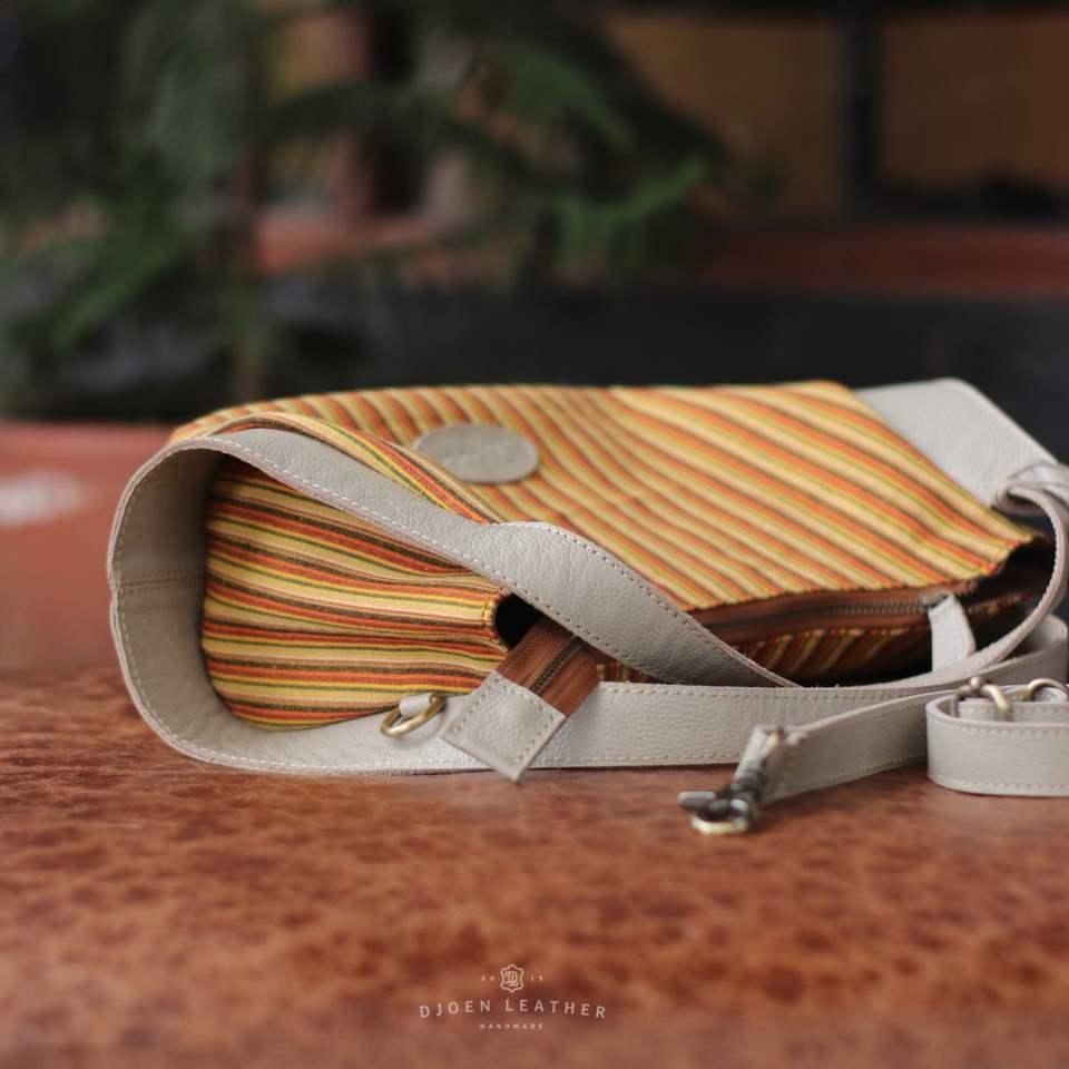 Hot Sale Colorful Striped Tenun & Leather Shoulder Bag Handmade Purse from Indonesia Handmade From Indonesia