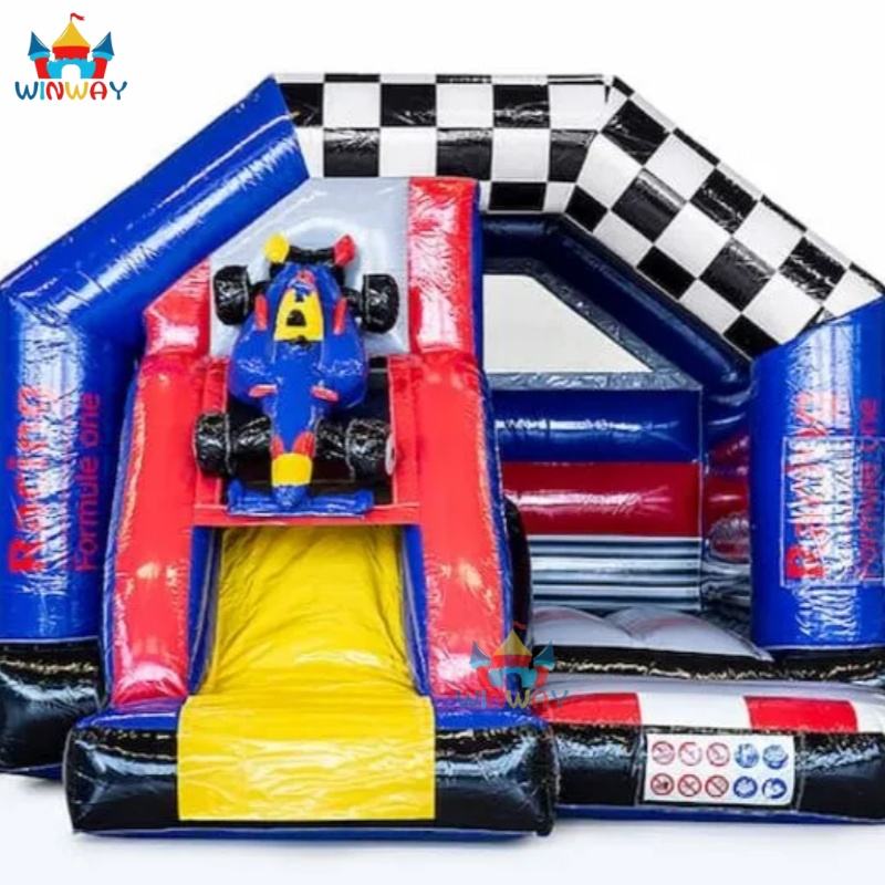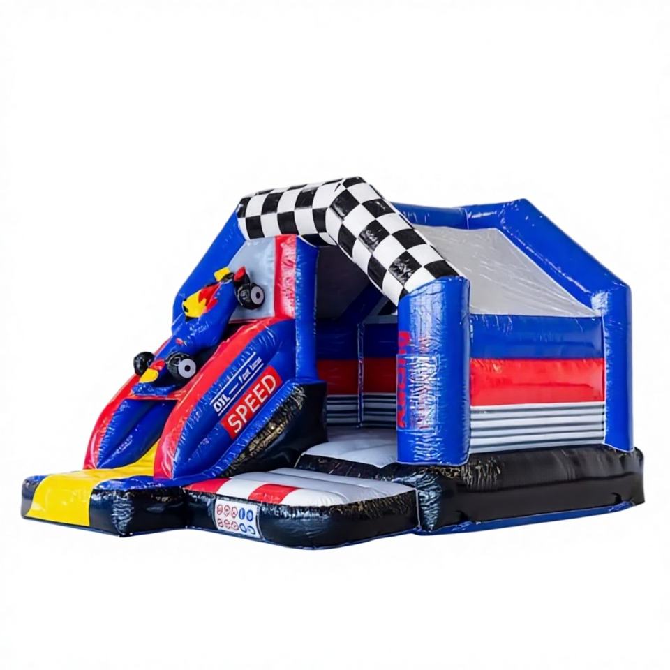 Hot Sale Commercial PVC Bounce House Combo Racing Car Bouncy Castle Classic Race Car 5.5x5x4m 5-10 Capacity Easy Setup