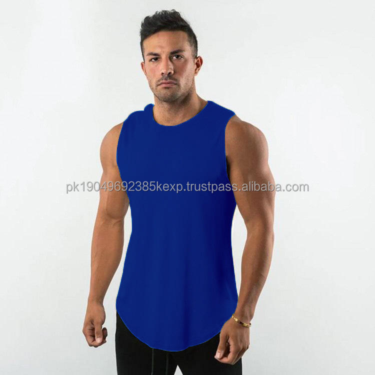 Hot Sale Cotton Spandex Plain Bodybuilding Fitness Stringer Custom Sport Top Tank Men