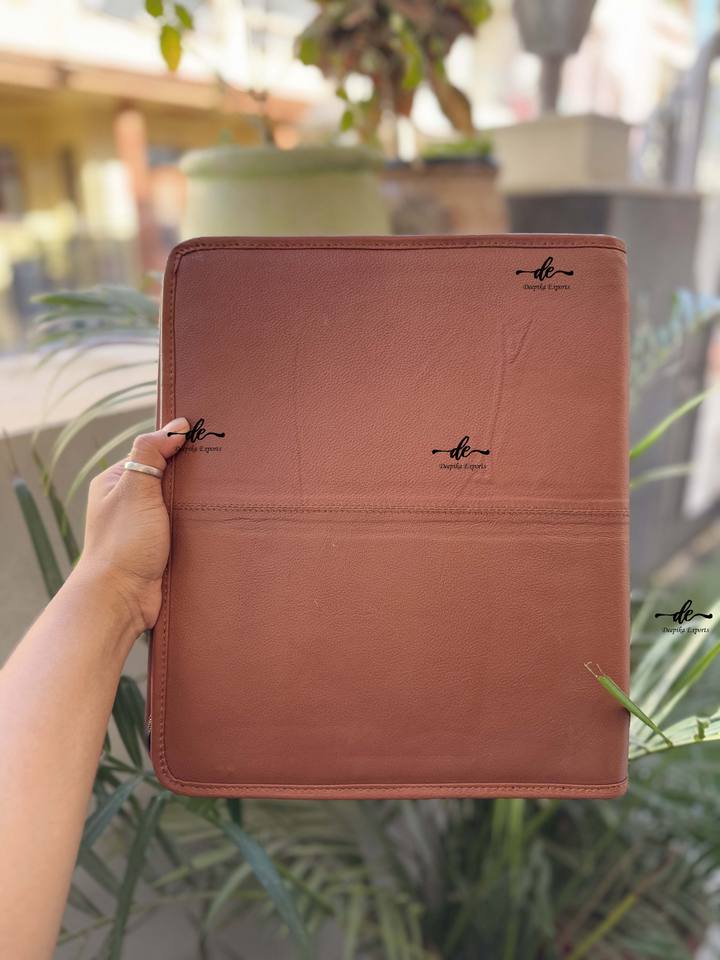 Hot Sale Cowhide Fur Hand Tooled Zipper Lock Business Portfolio Binder Manufacture Vintage Document Folder With Card Holder