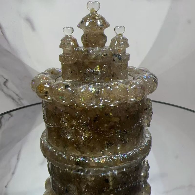 Hot Sale Crystal Gemstone Resin Castle Box with Colorful Crushed Stones and Glitter for Jewelry Storage