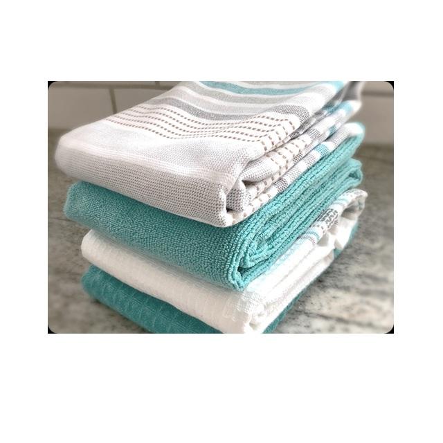 Hot Sale Custom Beige Colour Center Striped Print Quick Dry 100% Organic Cotton GOTS Certificate Purple Softest kitchen towels