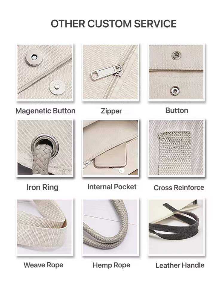 Hot Sale Custom Eco-Friendly Large Cotton Canvas Tote Bag Rope Handle Recyclable Reusable Printed Logo Size for Grocery Shopping
