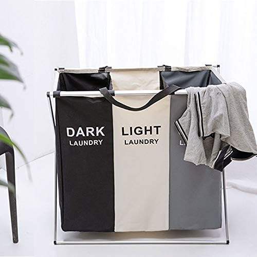 Hot Sale Custom Foldable 3 Sections Laundry Cloth Hamper Sorter Basket Bag Bin Dirty Clothes Bag with Aluminum Frame