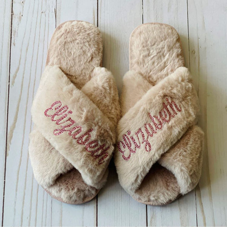 Hot Sale Custom Gold Silver Plush Furry EVA for Slippers Anti-Slip Wedding Bridesmaid Bedroom for Slippers for Winter Season
