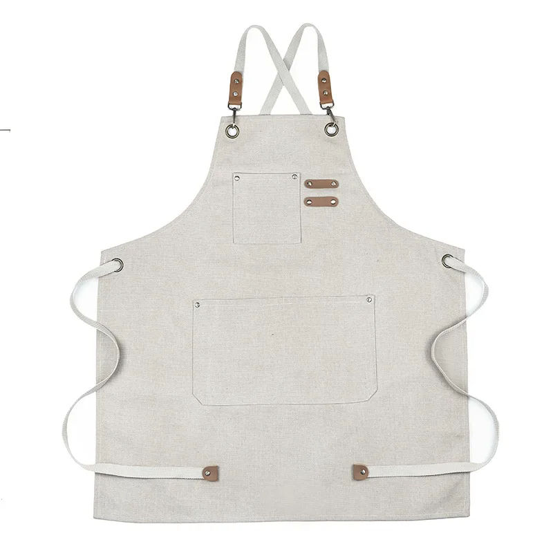 Hot Sale Custom Logo Garden Canvas Cotton Apron Heavy Duty Cross Back with Pocket Cafe Oil-Proof and Waterproof Working Tool