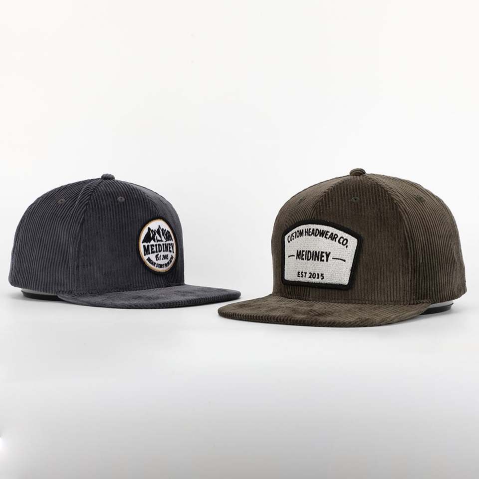 Hot Sale Custom Men Women 6 Panel High Quality Embroidery Patch Logo Flat Bill Gorras Cap Corduroy Fabric Hip Hop Snapback Hat