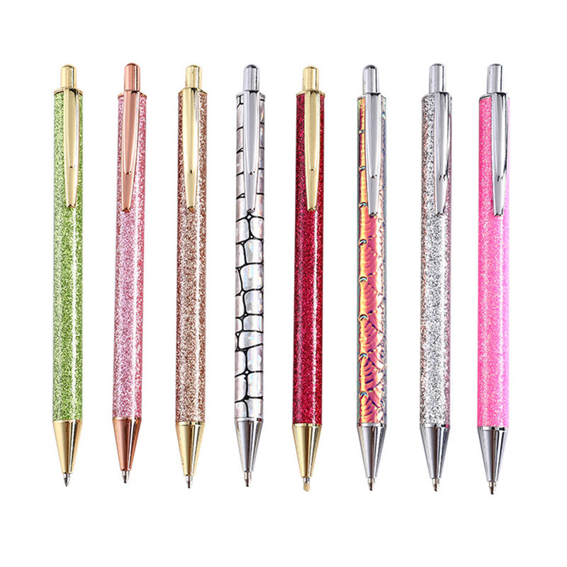 Hot Sale Custom Novelty Leather Cover Ballpoint Pen Glitter Metal Ballpoint Pen for Girls Promotional Item