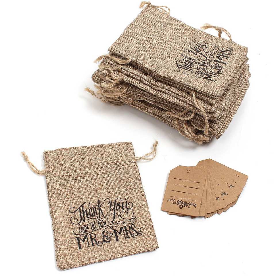 Hot Sale Custom Silk Screen Printed Burlap Pouch Bridesmaid Gift Bags with Drawstring and Tag Promotional Bags