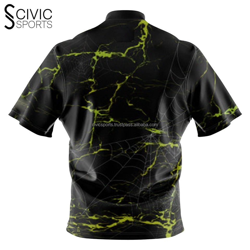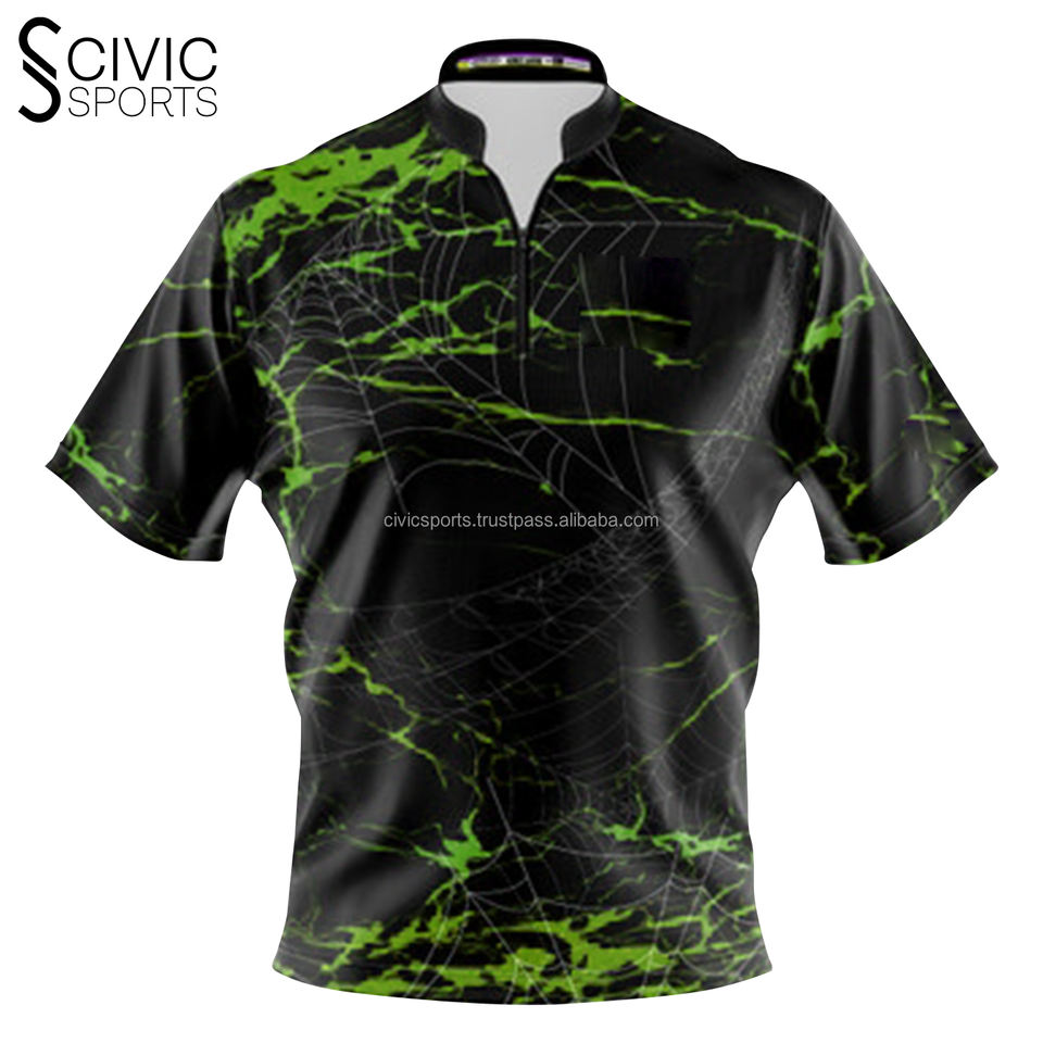 Hot Sale Custom Sublimated Bowling Jersey 180 gsm for Polo T Shirts for Men with Zipper Casual Style Cheap Team Bowling Shirts