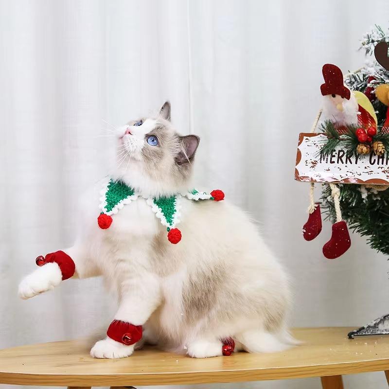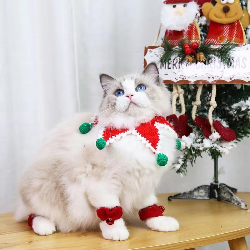 Hot Sale Custom Wholesale Pet Accessories Decoration Knitted Bib Christmas Cat Scarf