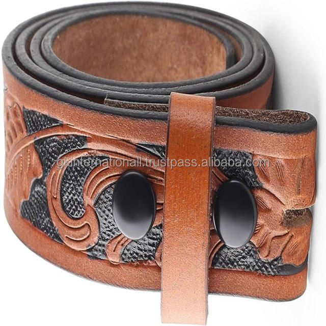 Hot Sale Custom made men's fashion western leather tooling belt with floral design embossed tooled leather cowboy belt
