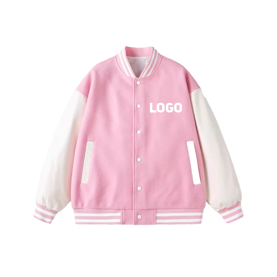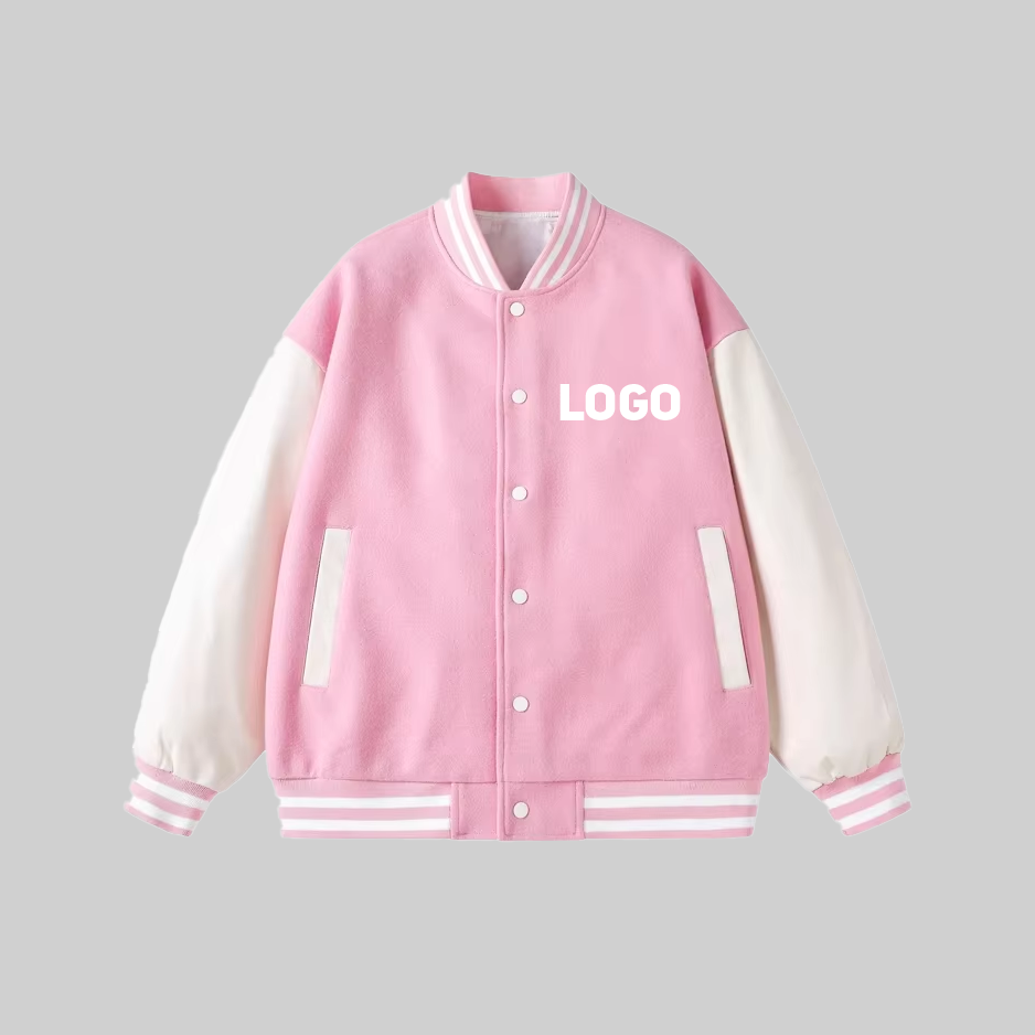 Hot Sale Customizable Men's Varsity Baseball Jacket Turn-down Collar Windproof Long Front Woolen Jacket Wool Polyester Shell