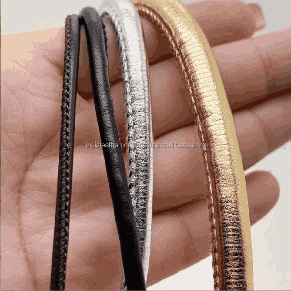 Hot Sale Customizable Silver Genuine round Stitched Leather Cord String Rope for Jewelry DIY Craft Bracelet Charm