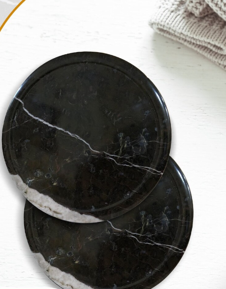 Hot Sale Customized Black Stone Marble Coaster Set with Brass Include Mug Round Tea & Coffee Cup for Drinks & Glass Mats & Pads