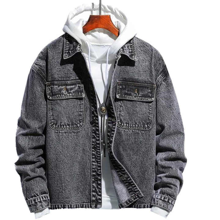 Hot Sale Denim Jeans Clothing Plus size men flap pocket drop shoulder oversized black denim jacket mens with your Brand Name