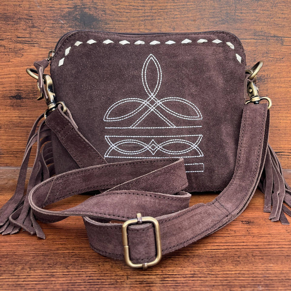 Product name:Genuine Leather Boot Stitch Fringe Crossbody Purse