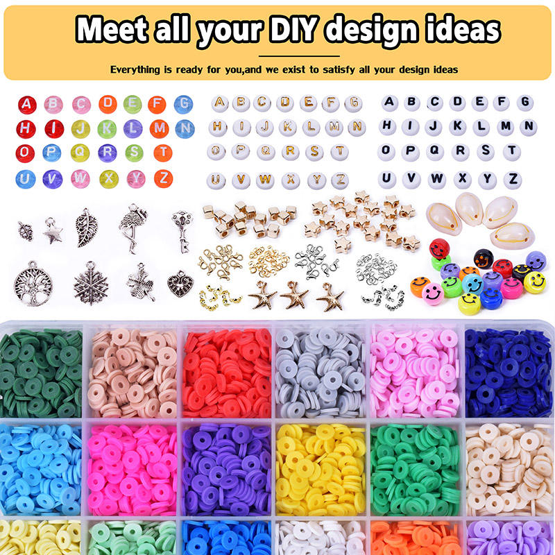 Hot Sale Diy Clay Beads Jewelry Kit Making Flat Round Polymer Clay Beads Own Design Multicolor Clay Beads for Kids