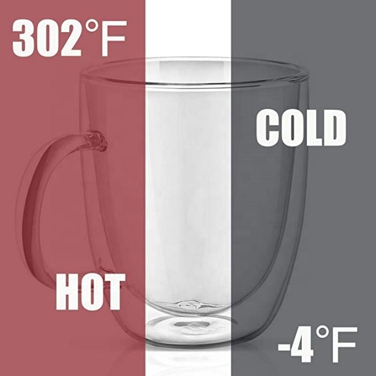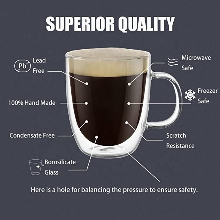 Hot Sale Double-Walled Clear Large Glass Mug & Tea Cups Saucers for Hot & Iced Beverages
