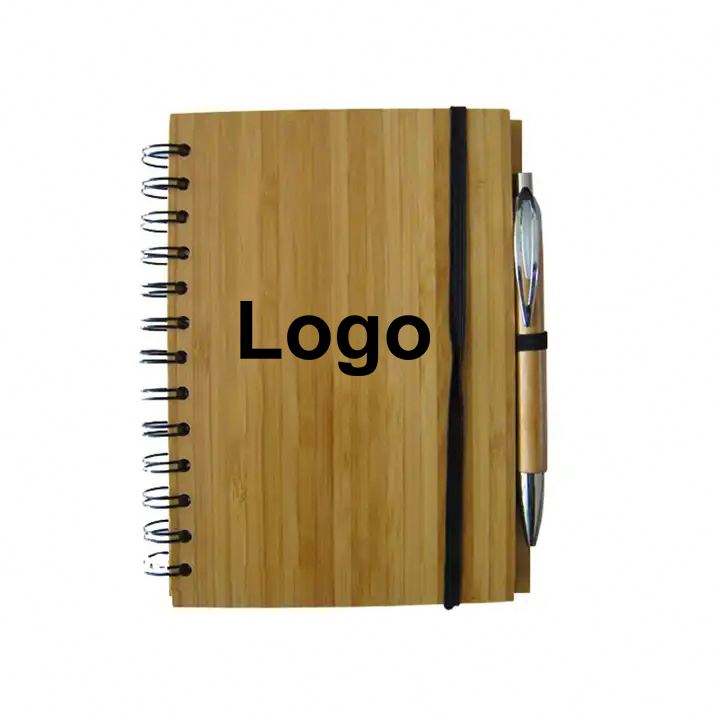 Hot Sale Durable ECO-Friendly Custom Logo Engraved Spiral Binding Bamboo Notebooks Journals with Pen