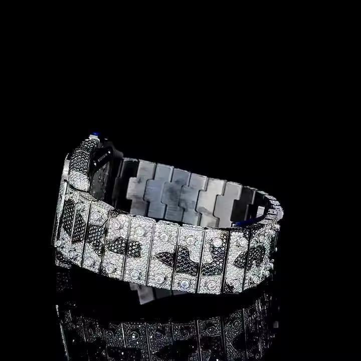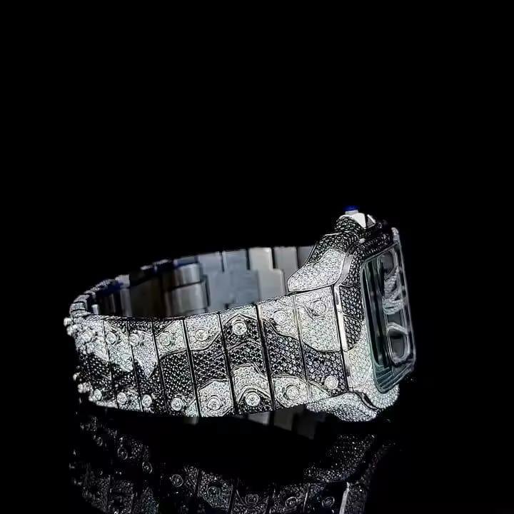 Hot Sale Elegant Black and White Moissanite Diamond Wristwatch for Weddings Celebrations and Business Style Available for Sale