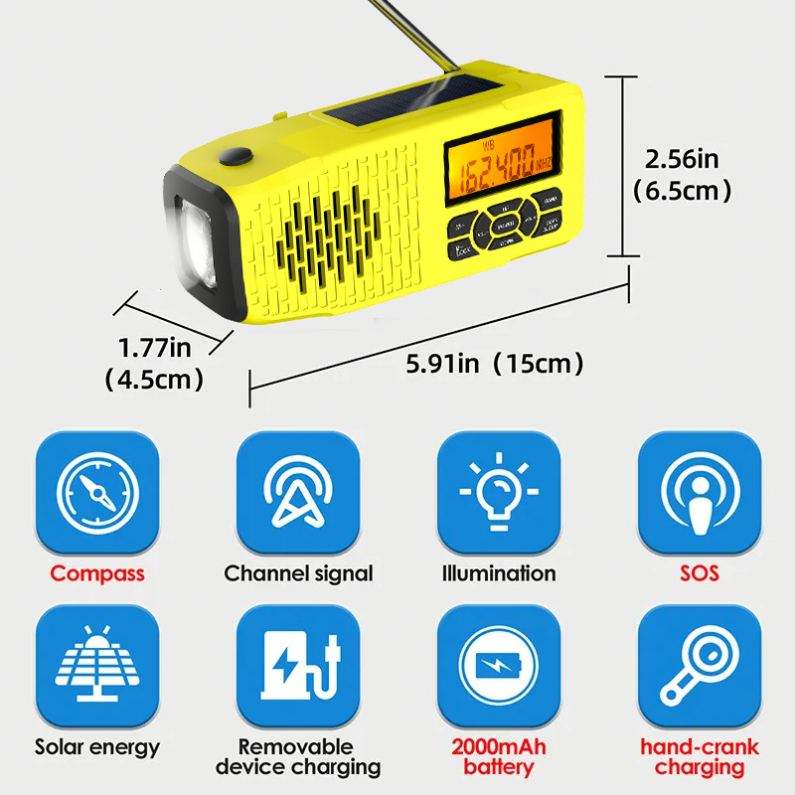 Hot Sale Emergency Portable Radio Am/fm Hand-crank Radio Flashlight Sos Alarm and 2000mah Power Bank Fm Digital Radio