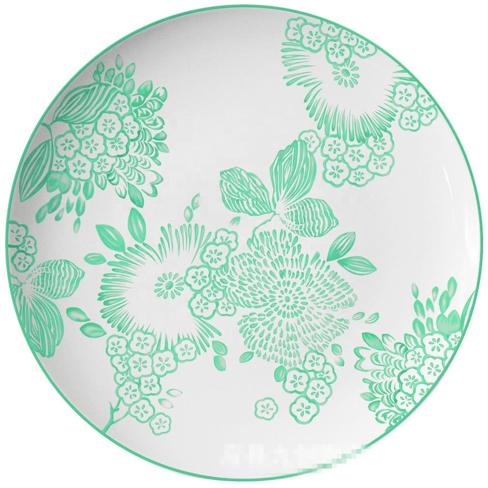 Hot Sale European Style Green Pattern Moonlight Flat Plate Home Cutlery Set