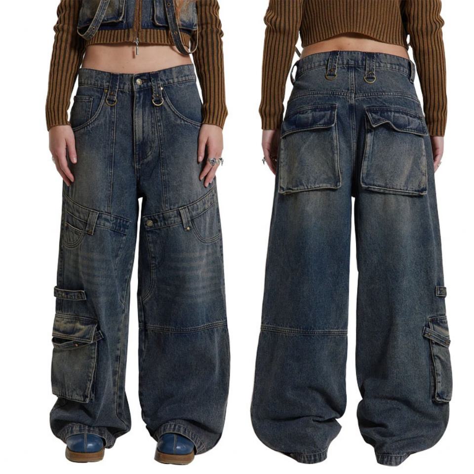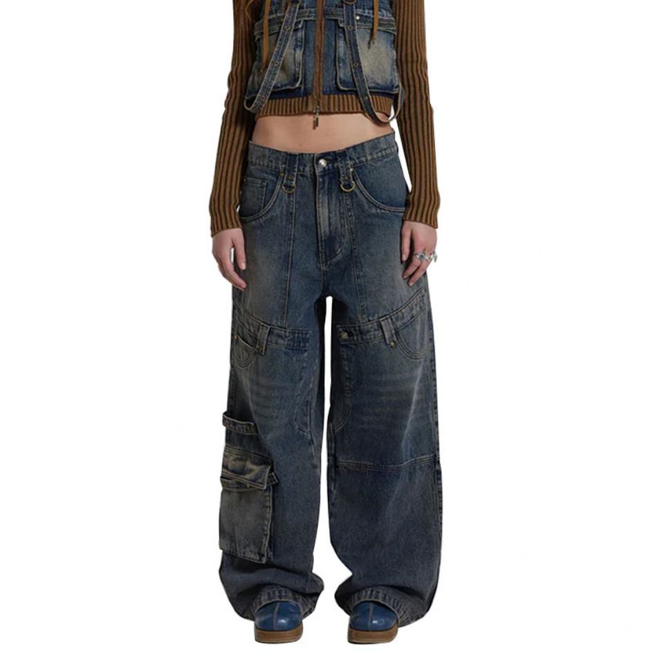 Product name:Blue Washed Baggy Cargo Jeans Women