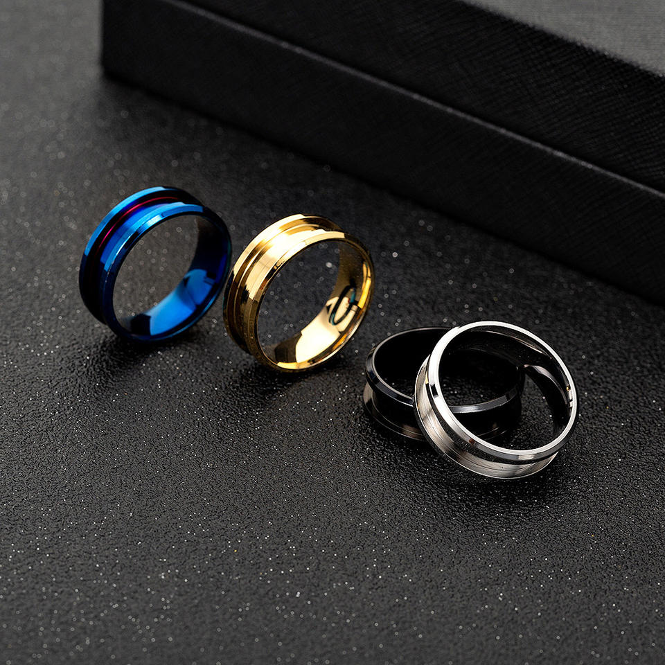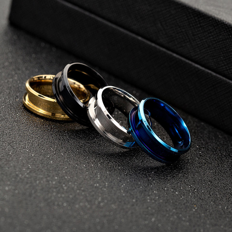 Hot Sale Fashion High Quality 8mm 6mm 4mm Titanium Steel Multi Colors Core Blank Ring Grooved Inlay Rings for Men Women