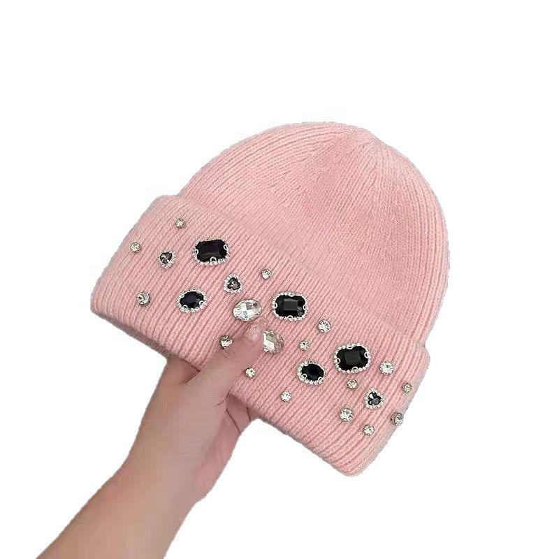 Hot Sale Fashion Rhinestone Knit Beanie for Women Shiny Crystal Winter Hat 0Warm Bling Beanie Cap Wholesale OEM Supplier Low Moq