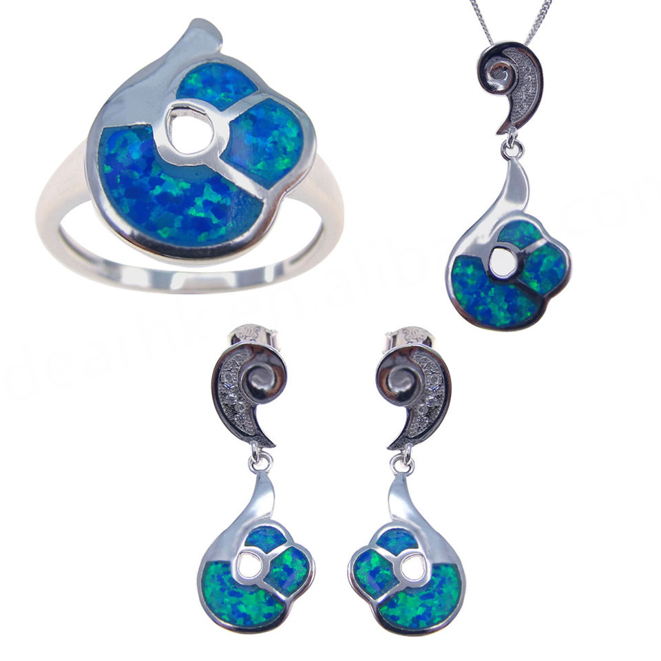 Jewelry Sets, Sterling Silver Opal Jewelry Rings Pendant Neckalce