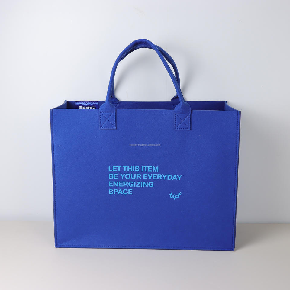 Hot Sale Square Modern PET Felt Custom Felted Fabrics Tote Bag Eco Friendly Shopping Bag Promotional Gift Blue Bag