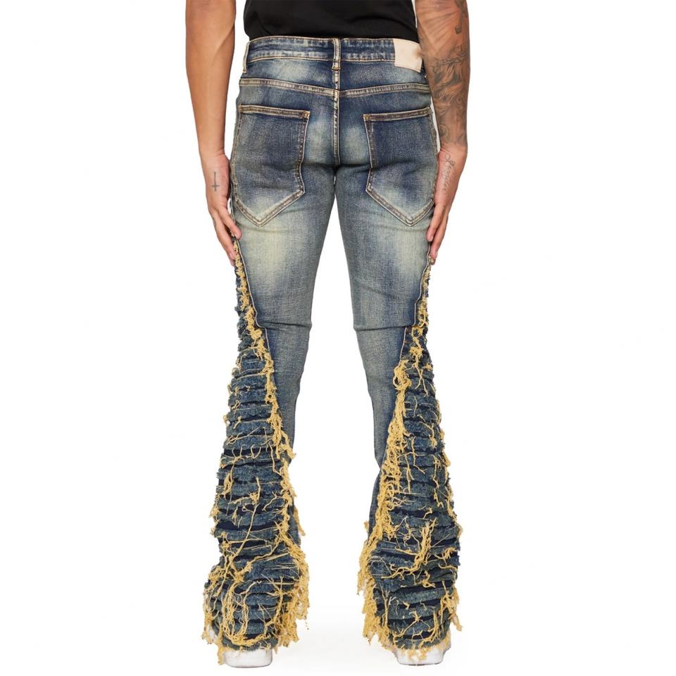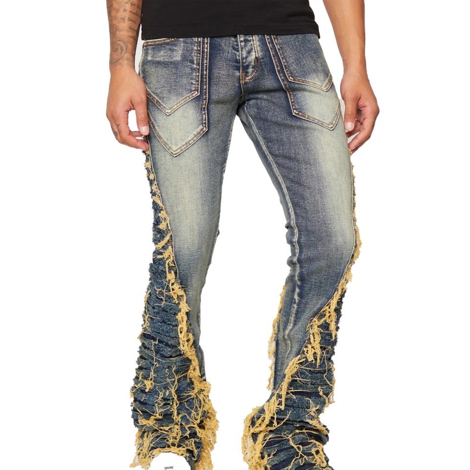 Hot Sale Fitted Shinny Wide Leg Stacked Ripped Denim Jeans Pant for Men