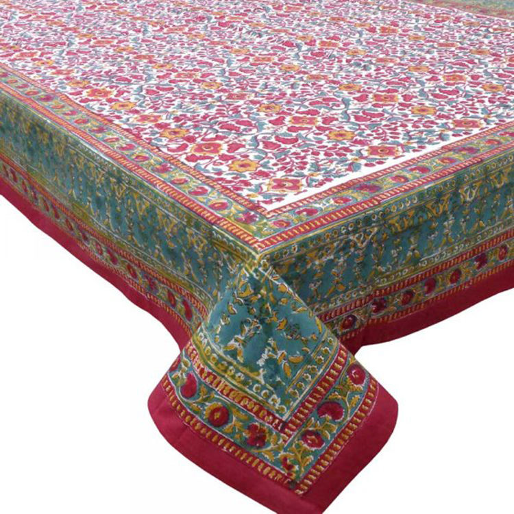 Hot Sale Indian Manufacturer Handmade Floral Hand Block Printed Eco-friendly Oilproof Pure Cotton Customizable Tablecloths for