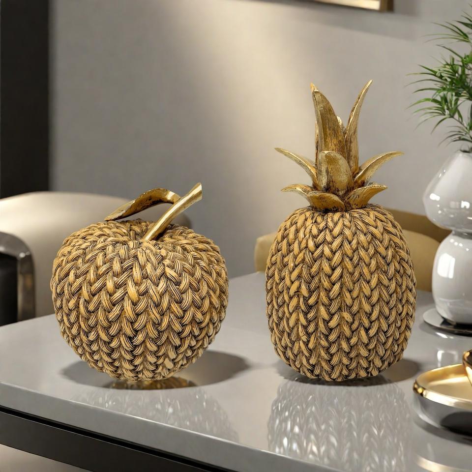 Hot Sale Folk Art Apple Pineapple Epoxy Resin Sculpted Customized Figurine Ornament Creative Living Room Tabletop Christmas
