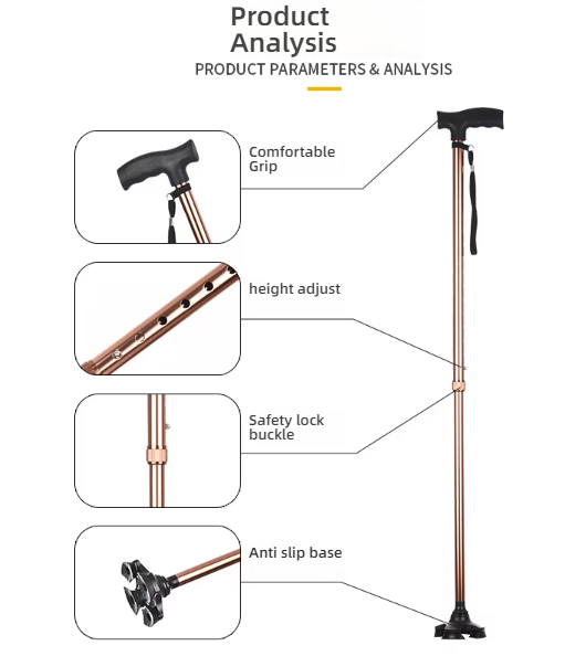 Hot Sale Free Standing High Quality Quad Cane Four-legged Walking Sticks Orthopedic Forearm Crutch for Adults