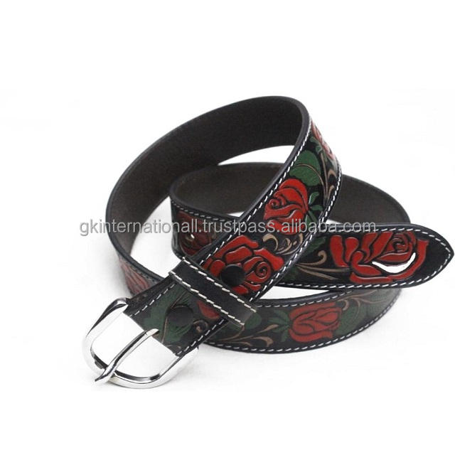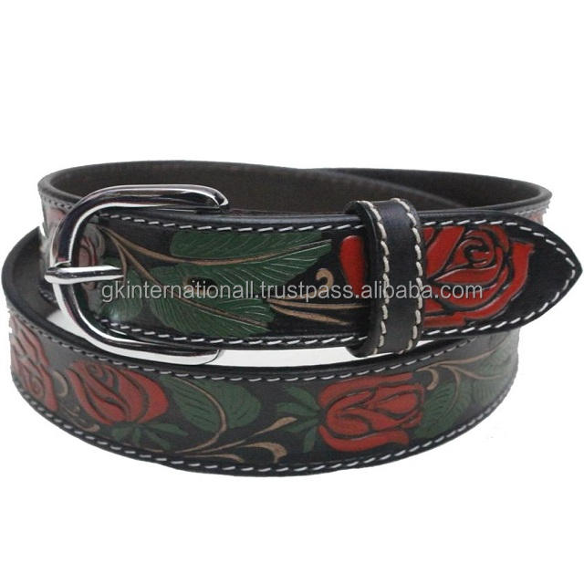 Hot Sale Full Grain Genuine Western Leather Tooling Belt for Cowboy Hand Carved Floral Embossed Tooled Leather Belt All Sizes