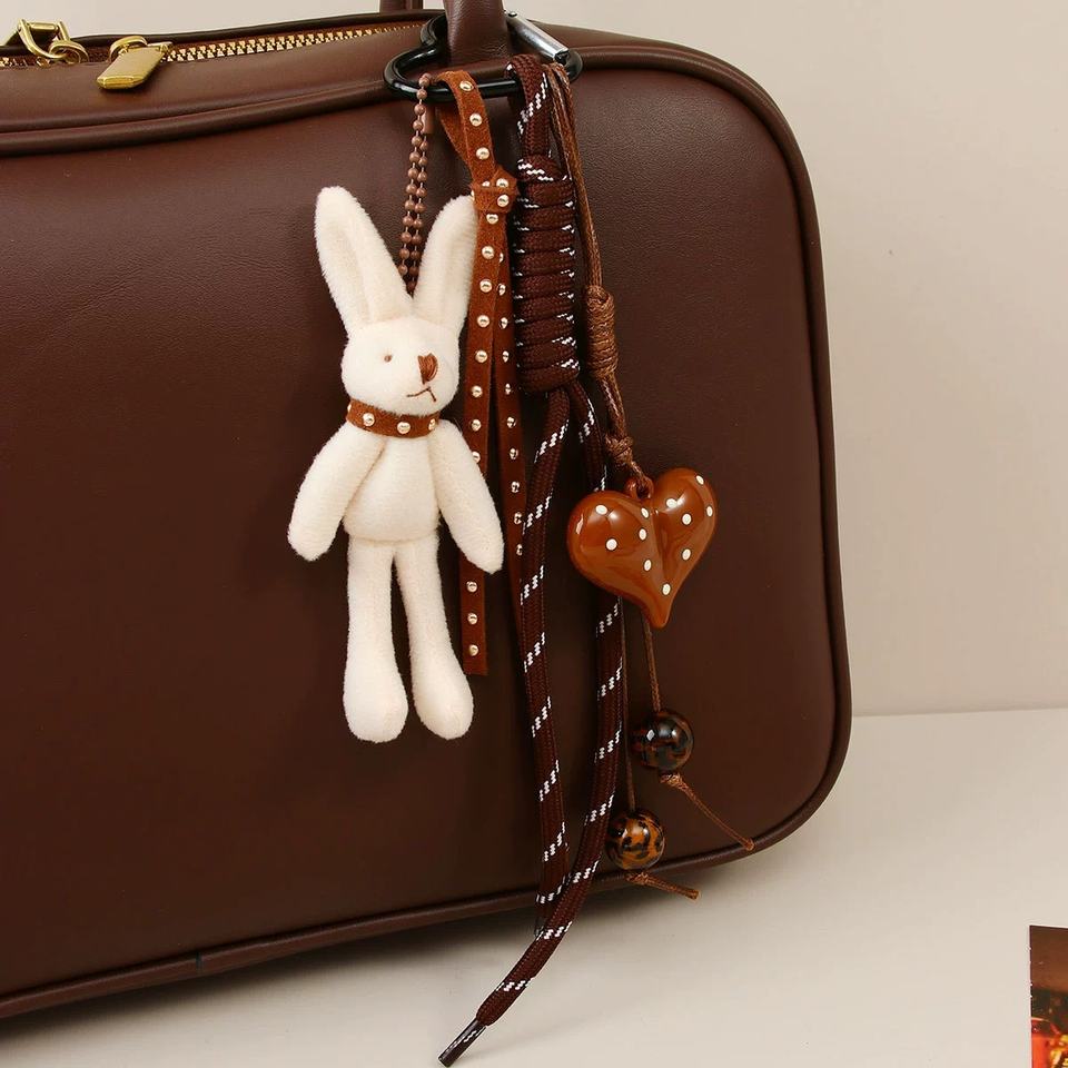 Hot Sale Girls Cartoon Rabbit Key Chain Cute Bunny Purse Bag Spot Heart Pendant Keychain Promotion Gift Women Handbag Charms
