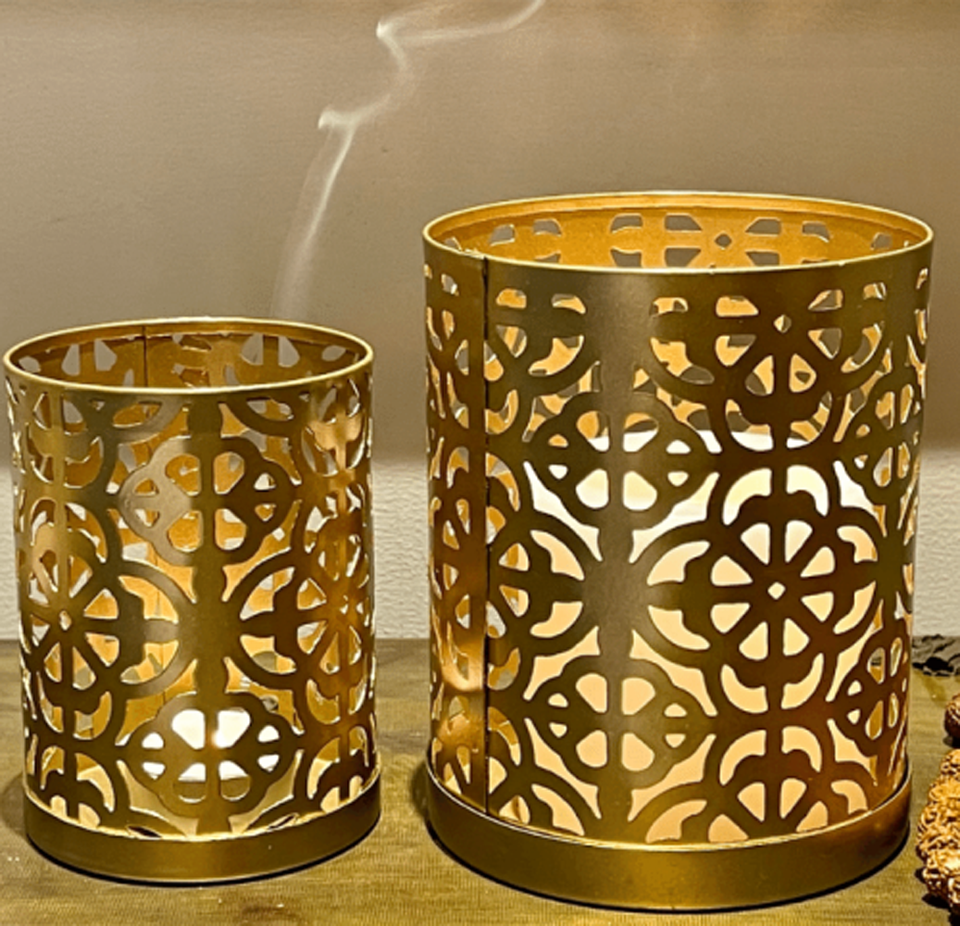 Hot Sale Golden Finished Iron Metal Candle Stick Votive Holder Laser Cut in Attractive Candle Shape for Home Decoration