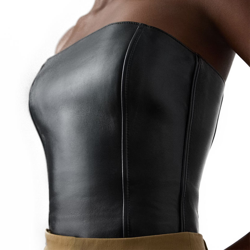 Hot Sale Gwyneth Inspired Lambskin Leather Bustier Top Women's Luxury Nappa Corset Style Waist Cinchers Custom Logo Tailored Fit
