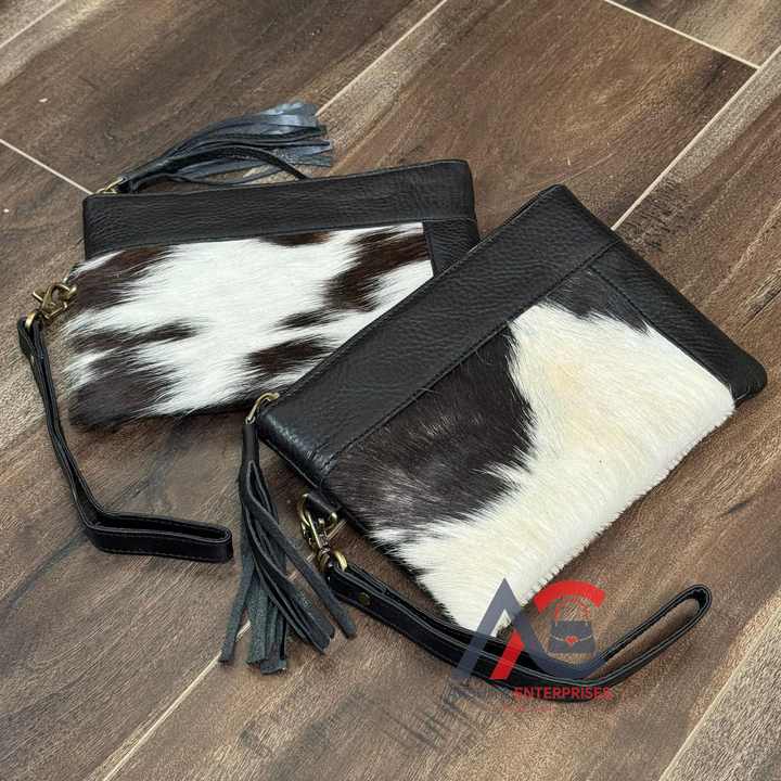Real Hair On Cowhide Leather Pouch Women's Genuine Leather Short Zipper Anti-theft Bohemian Wristlet Purse Handbags for Women's