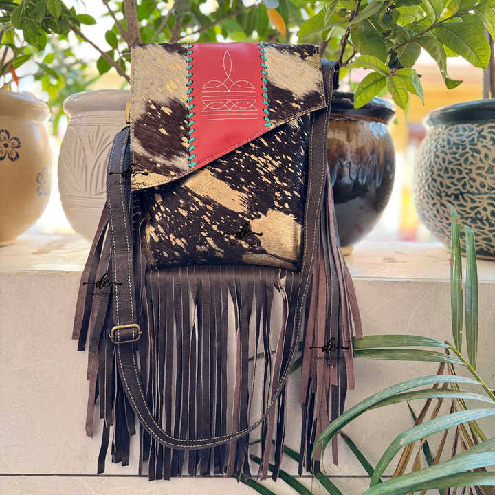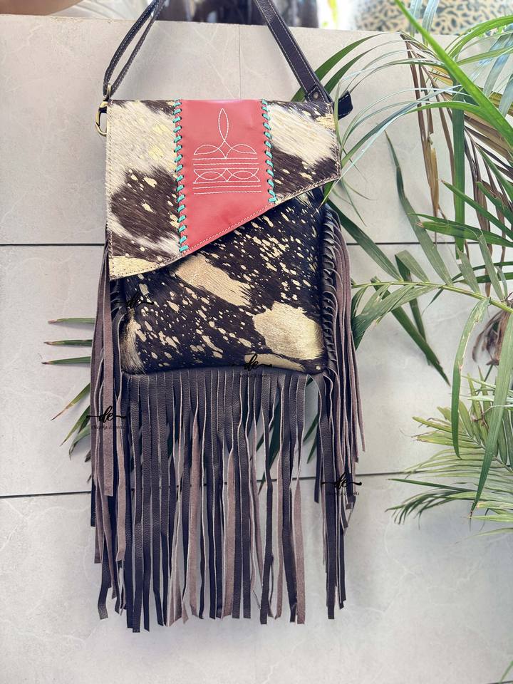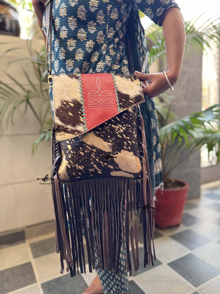 Hot Sale Hair on Hide Fur Leather Western Style Boot Stich Fringe Bag Handbag Sling Bag Bohemian Women's Multi Uses Handbag