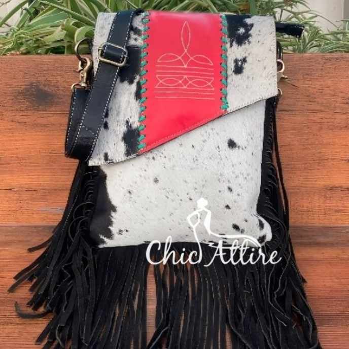 Hot Sale Hair on Hide Fur Leather Western Style Boot Stich Fringe Bag Handbag Sling Bag Bohemian Women's Multi Uses Handbag