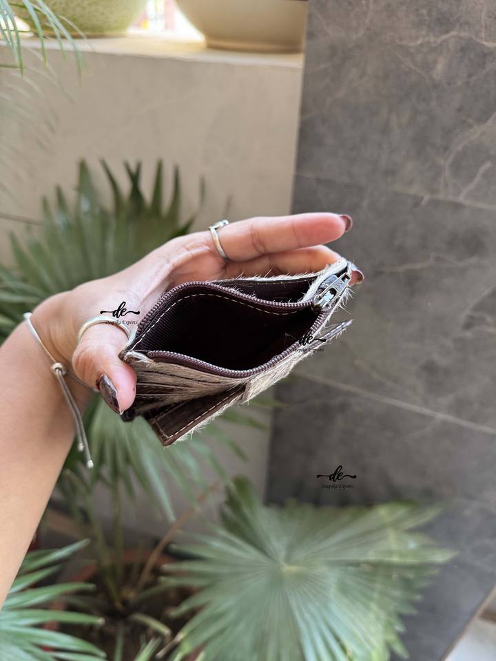 Hot Sale Hair on Hide Leather Coin Purse Stylish Clutch ATM Card Holder Cowhide Fur Leather Western Style Multi Use Clutch