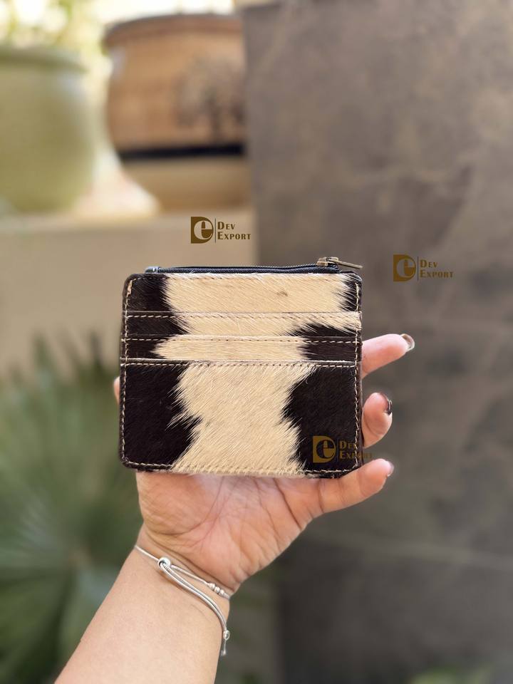 Hot Sale Hair on Hide Leather Coin Purse Stylish Clutch ATM Card Holder Cowhide Fur Leather Western Style Multi Use Clutch