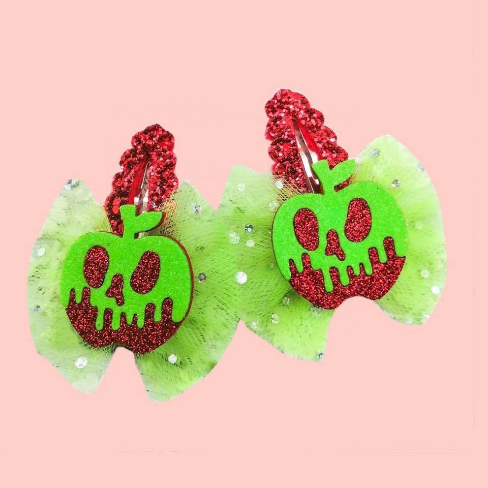 Hot Sale Halloween Party Cartoon Glitter Fabric Hair Clips Green Lace Baby Girls Kids Hair Accessories