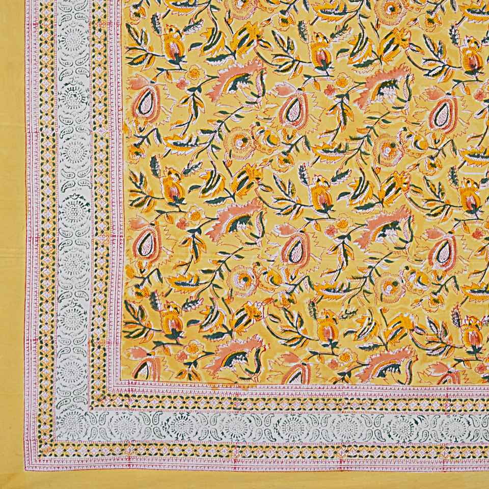 Hot Sale Hand Block Printed Beautiful Floral Design Table Cloth Table Cover Table Linen with 8 Napkin Set in Wholesale Price