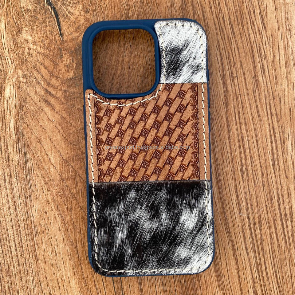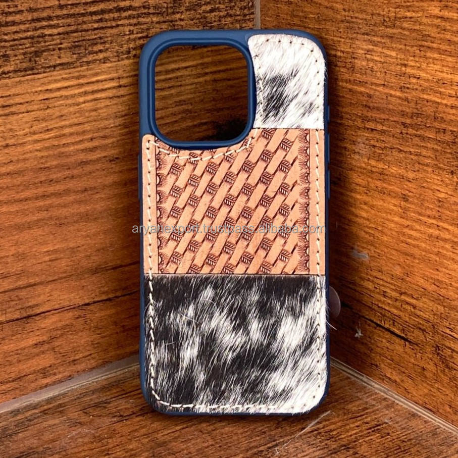 Hot Sale Hand Tooled Genuine Leather Phone Case Western Cowhide Mobile Cover Custom Full Grain Leather Phone Cases for Iphone 15