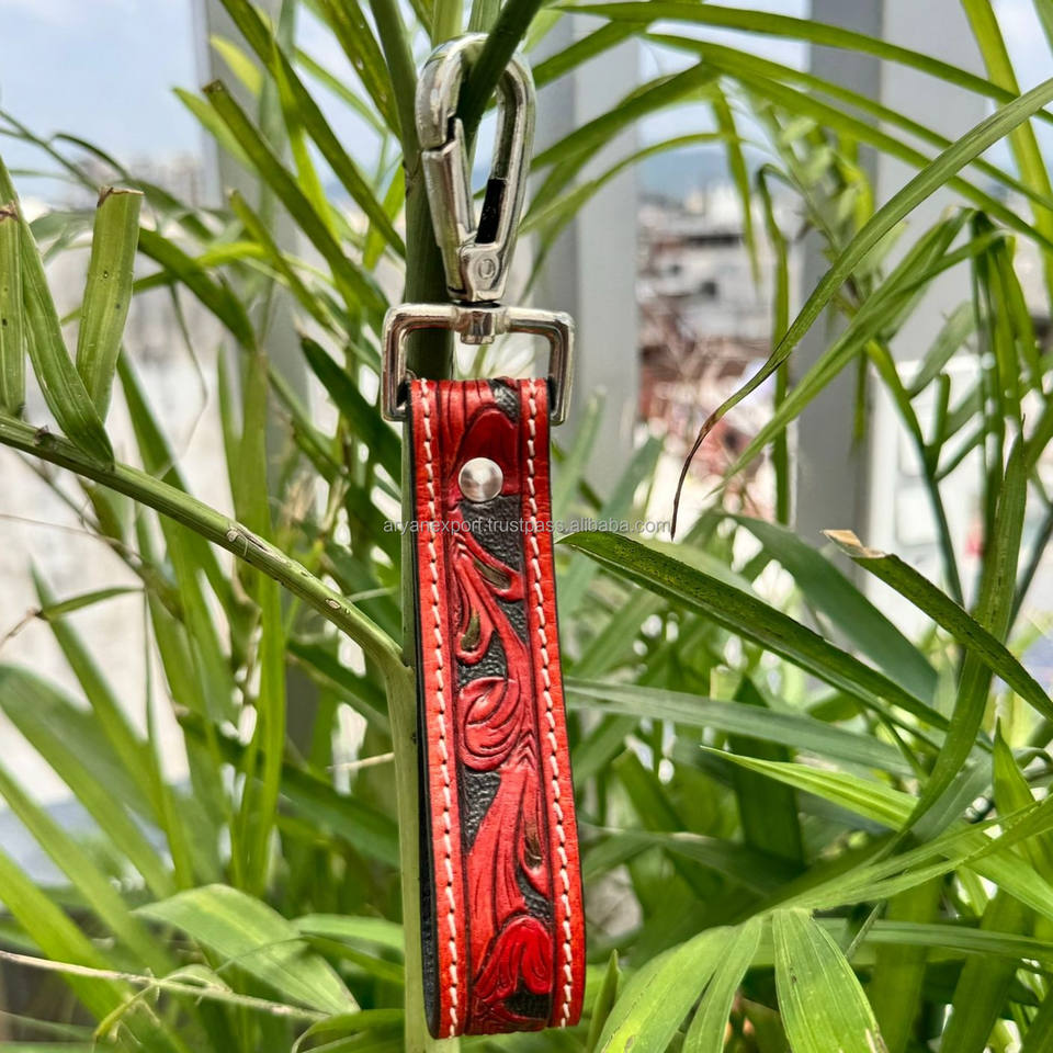Hot Sale Hand Tooled Leather Small Wristlet Keychain Western-Style Genuine Leather Key Fob Custom Cowhide Key Clip for Women's